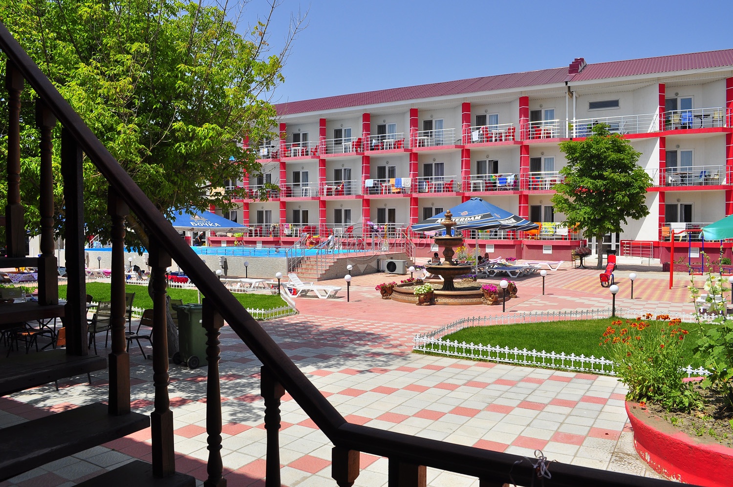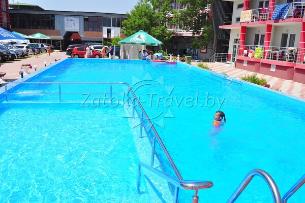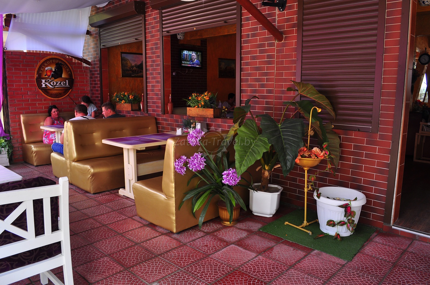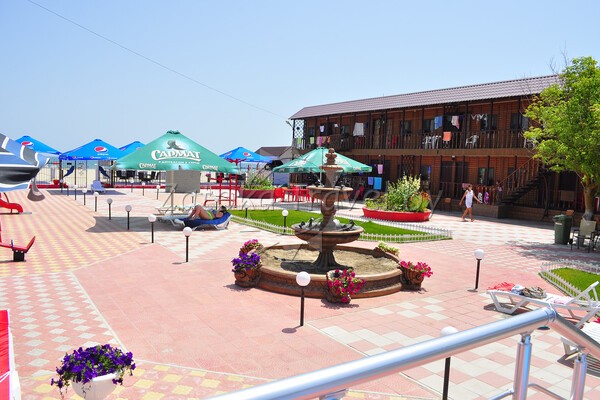 База отдыха имеет большую зелёную территорию, вместительную охраняемую стоянку внутри территории, 3 кафе, в которых обеспечивается комплексное питание, а также возможность заказов блюд по меню. Есть кафе на самом берегу моря, где можно насладиться морским пейзажем и вкусно покушать. Живая музыка поднимет настроение посетителям двух кафе-баров при въезде на базу. Также на территории базы расположена большая детская игровая площадка фирмы «ИнтерАтлетика», в сезон работает детский бесплатный аниматор, проводит конкурсы и раздаёт призы деткам — победителям. Для удобства отдыхающих установлено много ногомоек, скамеек для отдыха, столиков и зонтов от солнца. На территории базы имеется взрослый и детский бассейн.Ежедневно проводится бесплатная аквааэробика. Для детей предусмотрена бесплатная анимация. На пляже вы найдете большие горки, скутера, другие водные развлечения, шезлонги, а главное — жаркое солнце и ласковое море, теплый песок.