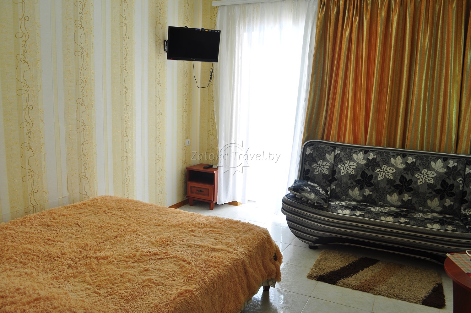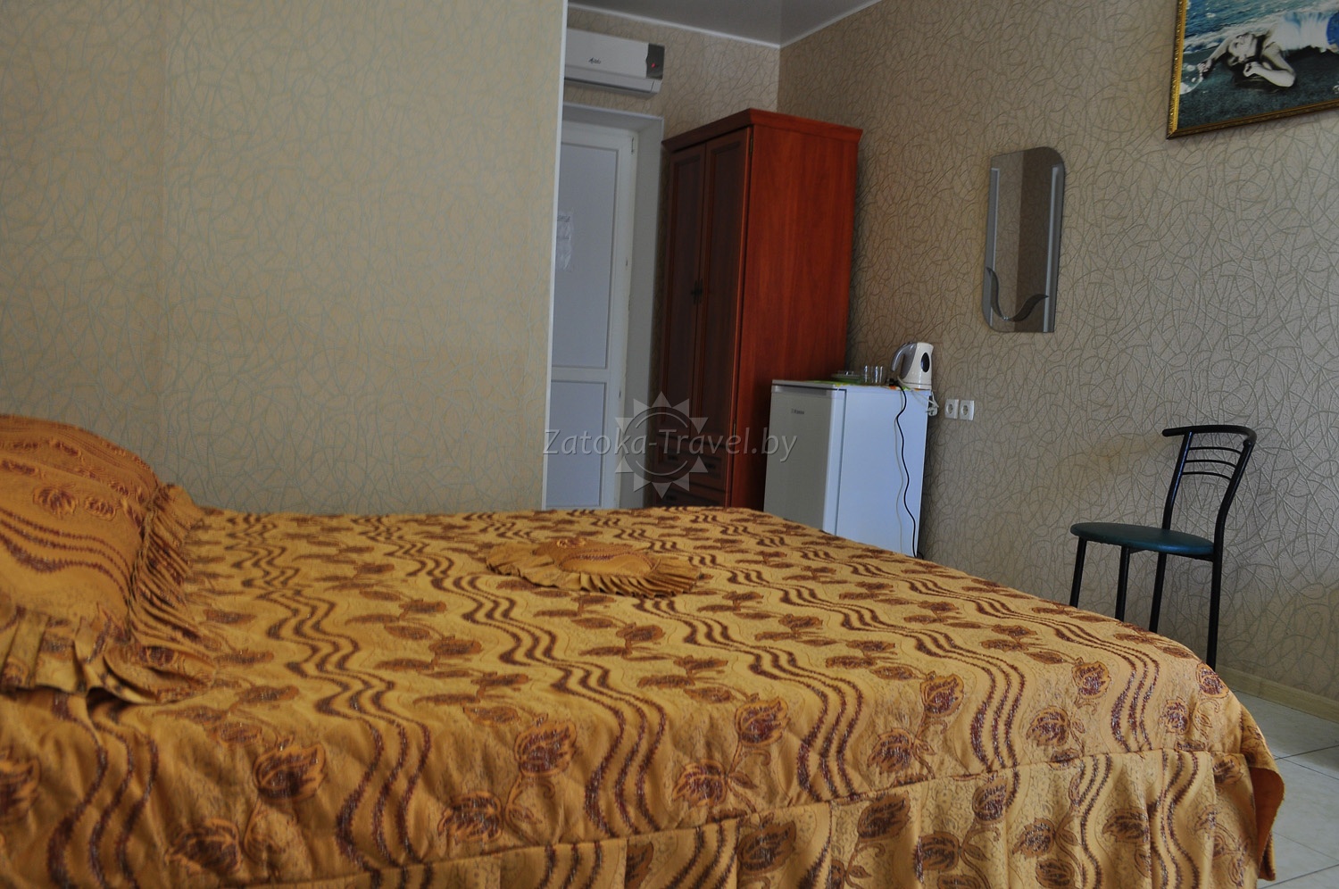 2-х местный «стандарт»: двуспальная кровать, кондиционер, ТВ, холодильник, туалет, душ и балкон.