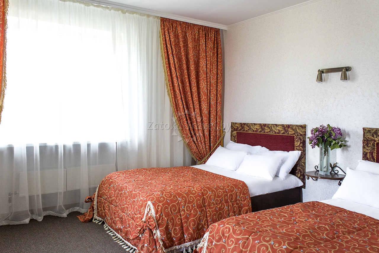 "СУПЕРИОР" (3 корпус): двуспальная кровать или две полуторные кровати, кондиционер, холодильник, TV, санузел с ванной комнатой, сейф, телефон. Комфортно могут разместится до 3 взрослых гостей, либо семьи с одним взрослым ребенком и одним инфантом.