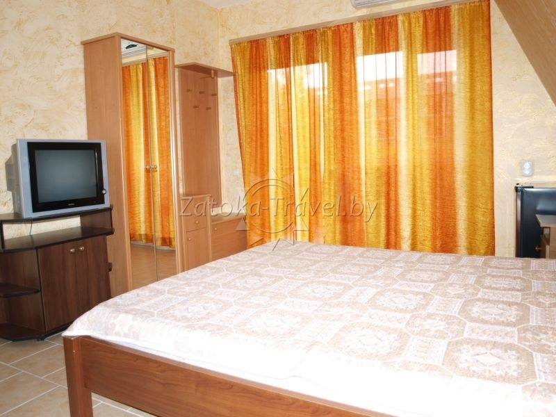 Номера «стандарт-улучшенный» в корпусе 6: двуспальная кровать, двуспальный диван душ, туалет, умывальник, холодильник, кондиционер, LCD-TV, балкон (1,2,3 этаж), вид на территорию.