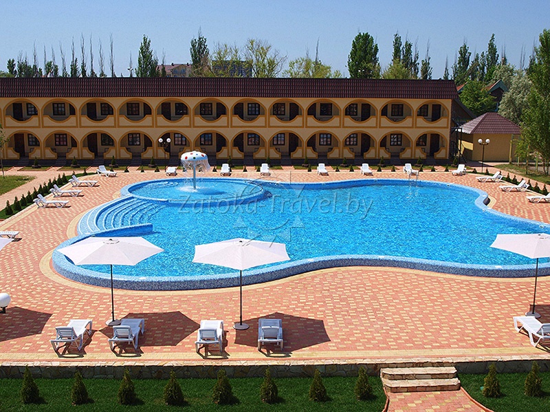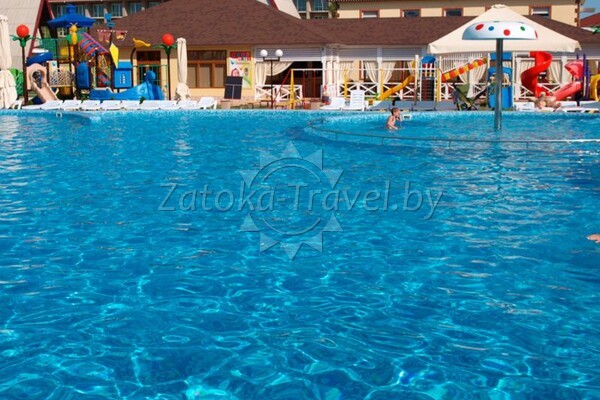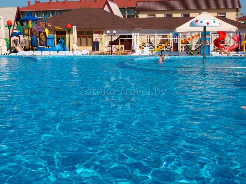 Жемчужиной комплекса можно назвать бассейн с прозрачной лазурной водой, чья чистота поддерживается современными системами циркуляции и очистки. Имеется в нем и детская секция, где пробуют силы самые маленькие пловцы. Есть на территории и естественный водоем, правда, исключительно декоративного и утилитарного предназначения – купаться там нельзя, но ведь рядышком – бассейн и Черное море.